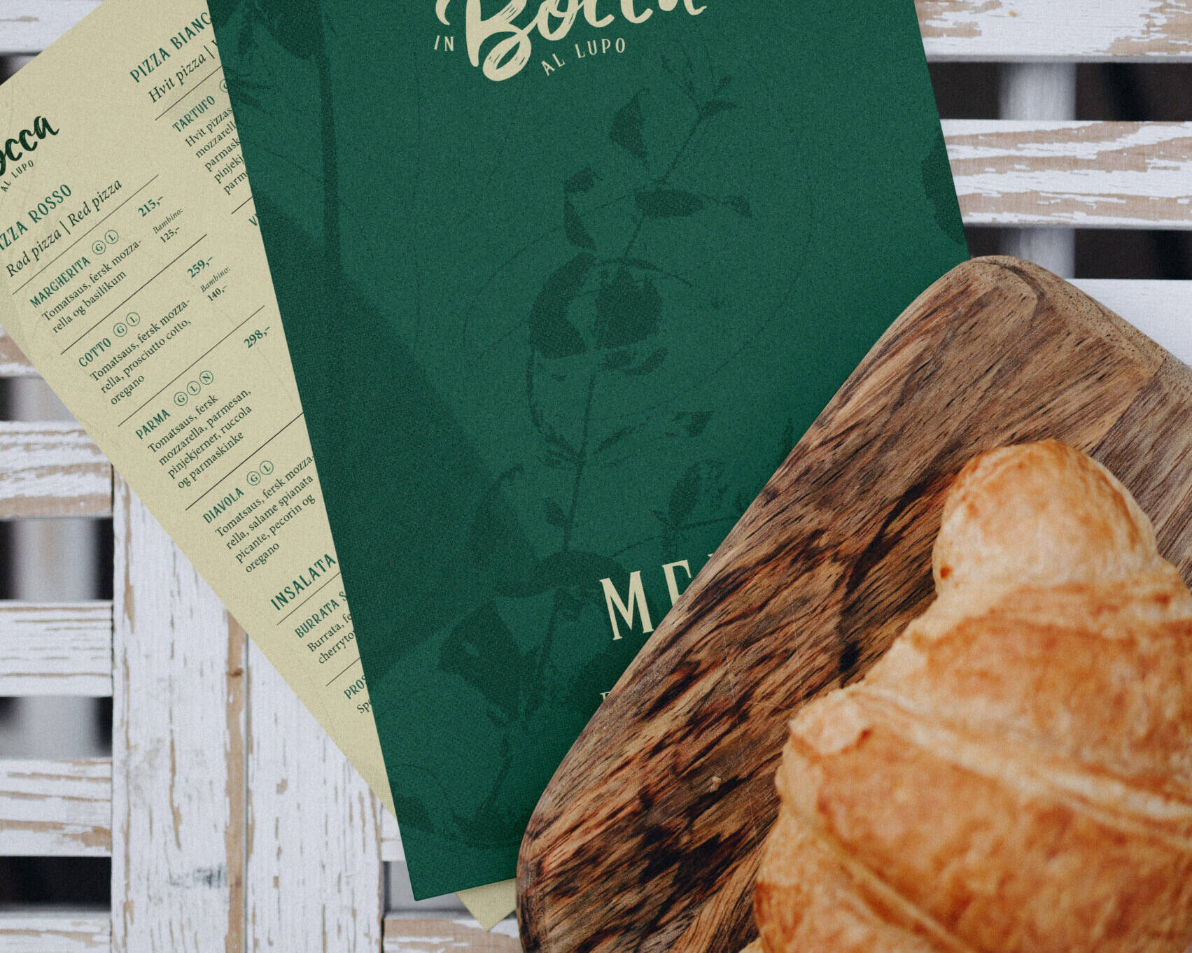 Det eksisterende visuelle uttrykket var litt for mye «strandbar» til å passe en innendørs helårsrestaurant, så de kontaktet derfor Krible for å få hjelp. Vi ble enige om å beholde noe av den samme følelsen, men justere noe på identiteten for å få inn litt mer eleganse, slik at det visuelle uttrykket bedre speiler kvaliteten på maten de serverer.